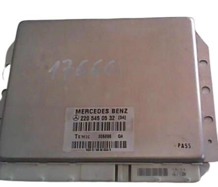 La referencia A 220 545 05 32 corresponde a una centralita de suspensión neumática (AIRMATIC) del Mercedes-Benz Clase S W220 (años 1998–2005). Su función es gestionar y controlar todo el sistema de suspensión neumática del vehículo